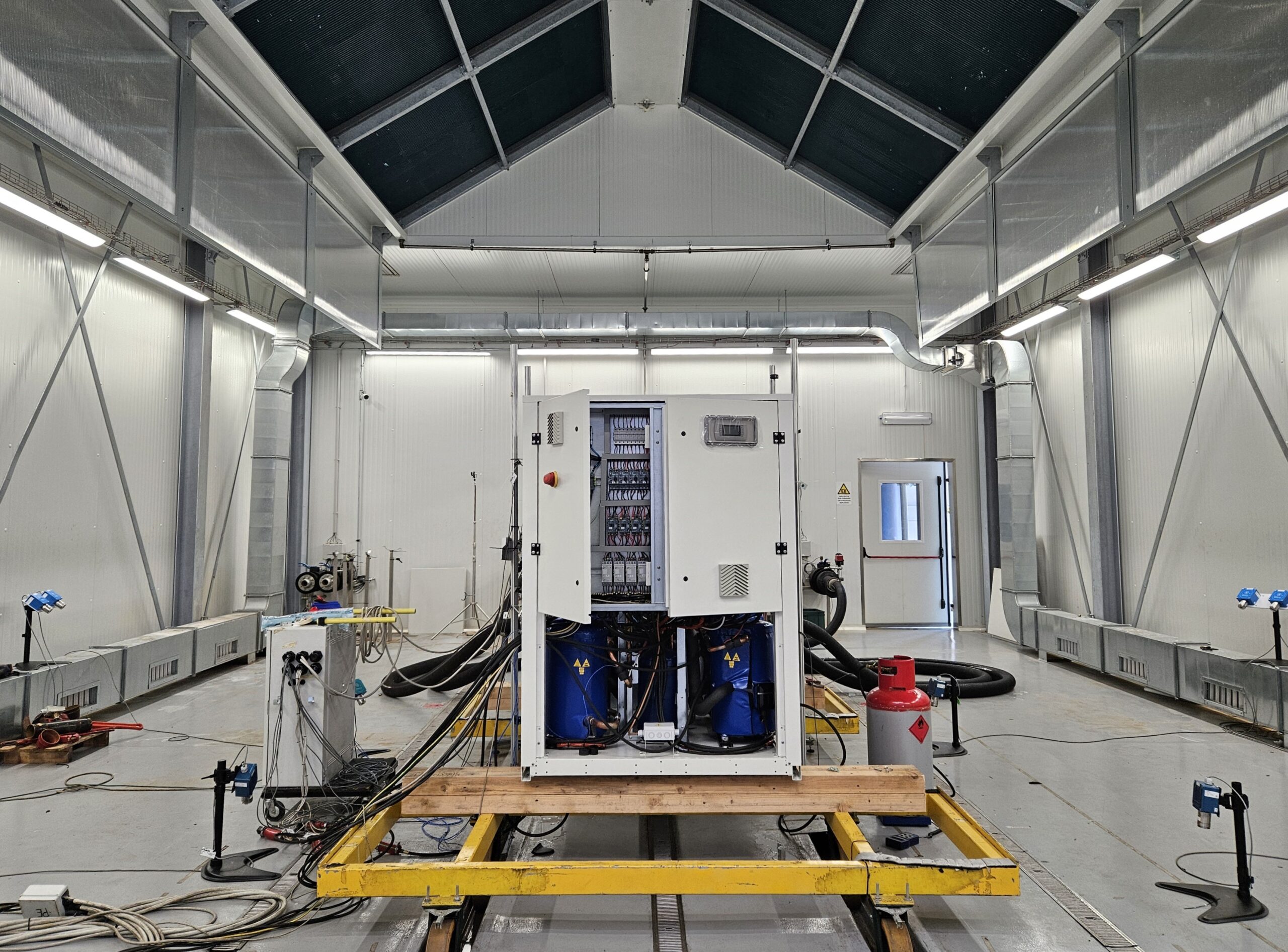 Tijdens het bezoek aan de fabriek Galletti is de unit getest in een speciale ruimte waar alle buitencondities zijn te creëren zodat de unit kan worden getest naar alle gewenste, en uitzonderlijke buitentemperaturen en daarbij wel de gewenste afgifte blijven produceren